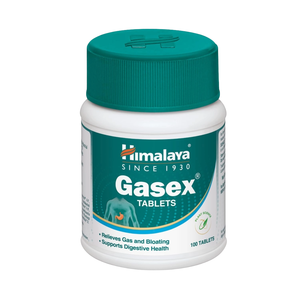 Ease digestive discomfort with Himalaya Gasex Tablets, a herbal formulation that improves digestion, relieves trapped gas, and provides quick relief from bloating and abdominal discomfort. This Ayurvedic digestive supplement supports healthy digestion and overall gastrointestinal wellness.